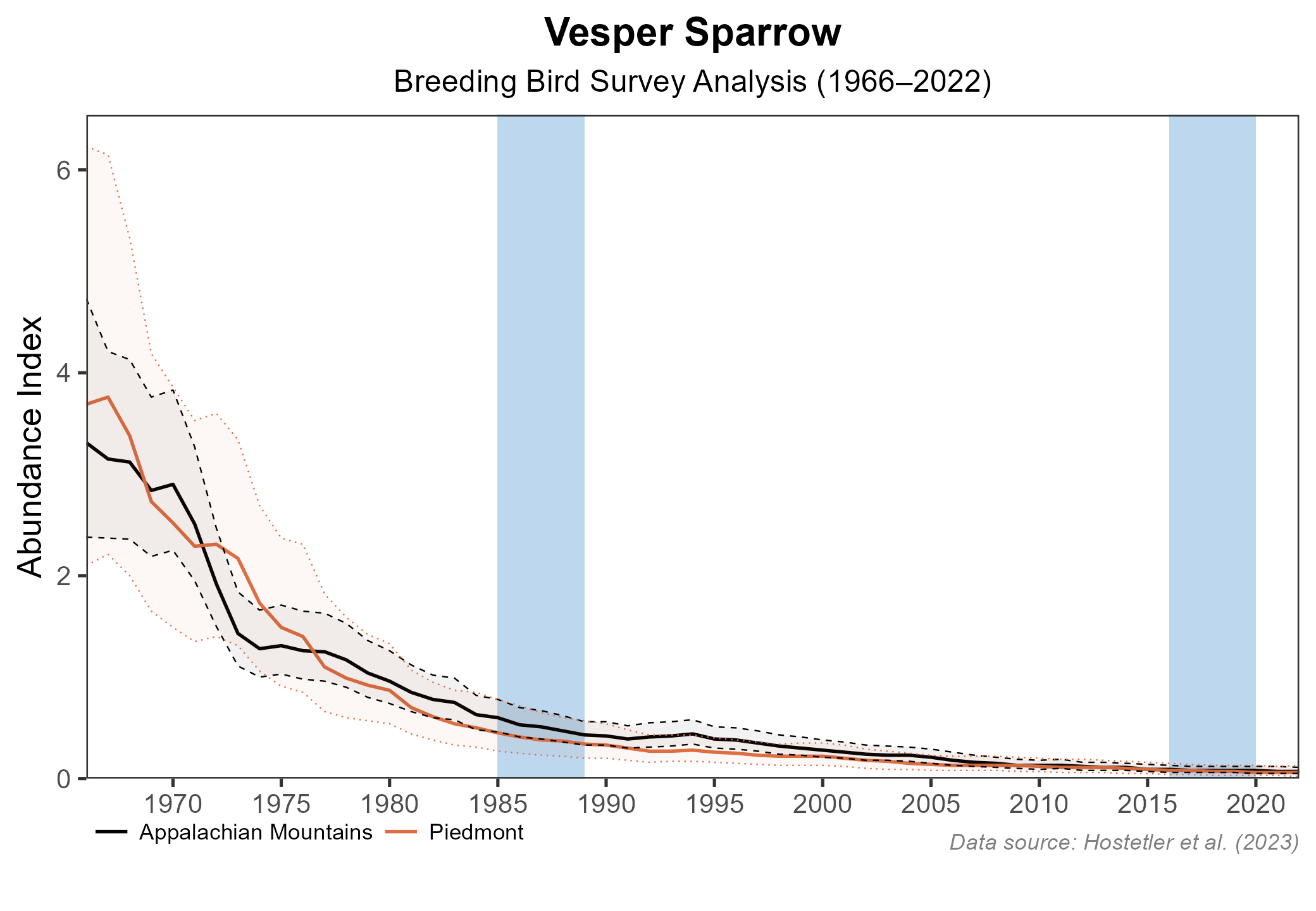 Hostetler, J. A., J. R. Sauer, J. E. Hines, D. Ziolkowski, and M. Lutmerding (2023). The North American breeding bird survey, analysis results 1966–2022. U.S. Geological Survey, Laurel, MD, USA. https://doi.org/10.5066/P9SC7T11.